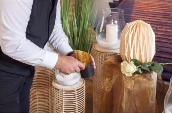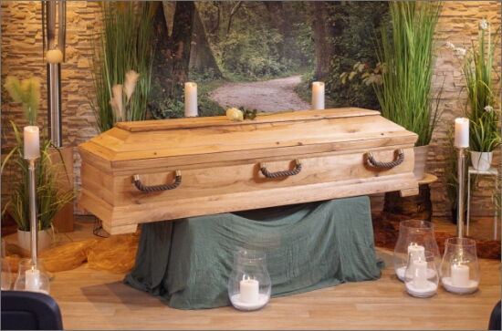 Die Trauerfeier kann entweder am Sarg vor der Einäscherung oder im Rahmen der Urnenbeisetzung stattfinden.